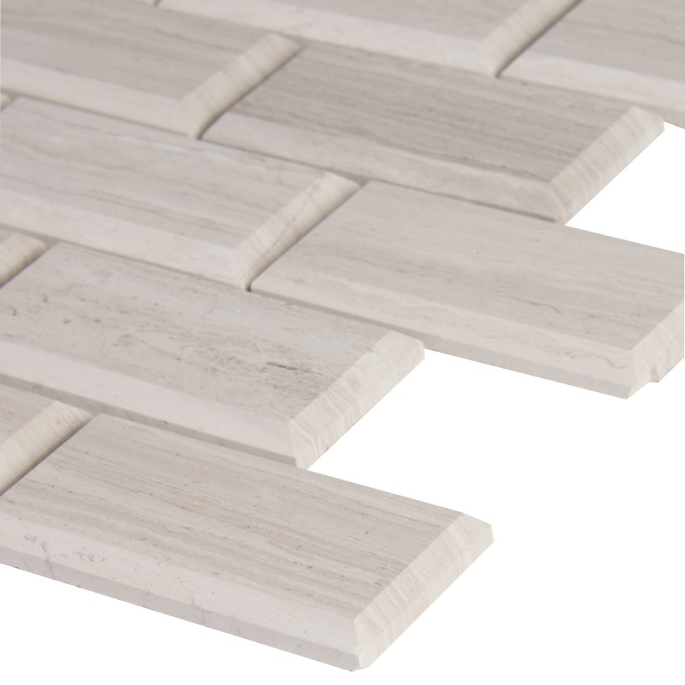 BEGM74 2″x4″ Wooden White Polish Marble Beveled Edge Brick
